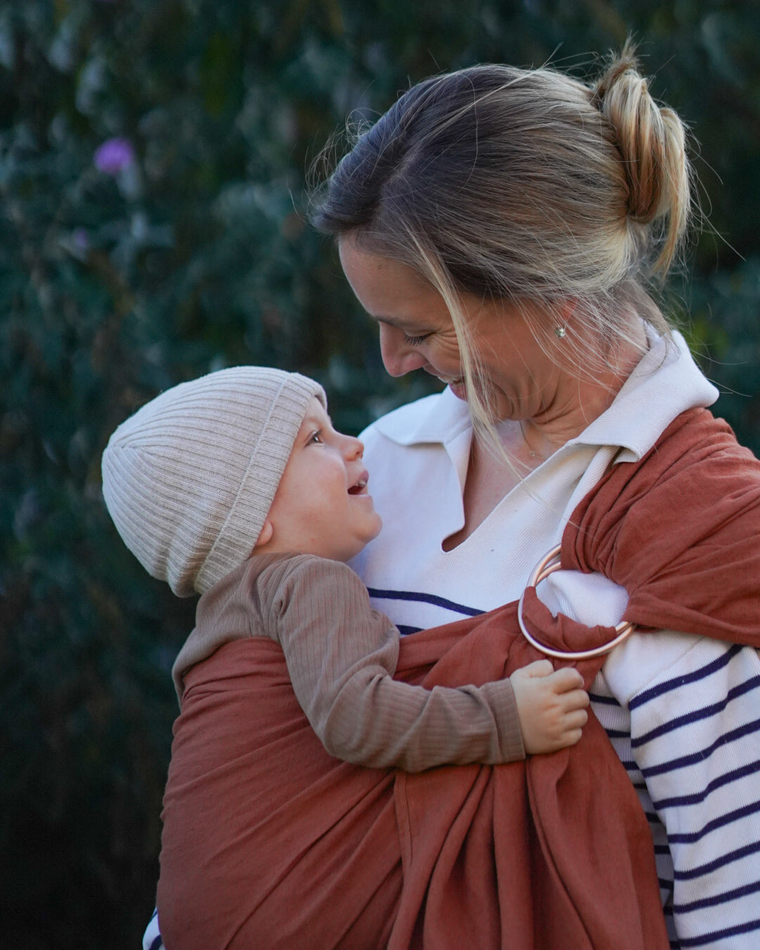 Hallo! Schön, dass du da bist! Wir sind ein kleines Familienunternehmen und haben es uns zur Aufgabe gemacht, Eltern in ihrem Alltag zu unterstützen. Ich bin Hannah und habe selbst vier Kinder. Ich weiß welchen Herausforderungen man als Eltern tagtäglich begegnet. Babys wollen am liebsten rund um die Uhr ganz nah bei Mama und Papa sein. Kein Wunder - da fühlt sich das Kind sicher und geborgen. Leider ist es für die allermeisten von uns Eltern nicht möglich, das Baby oder Kleinkind ständig auf dem Arm zu tragen. Schließlich hat man viele Verpflichtungen. Ältere Geschwister, Haushalt, Arbeit. Das alltägliche Leben eben. In unseren weichen Tüchern, aus reinem Leinen, welches verantwortungsvoll und frei von belastenden Pestiziden in Europa hergestellt wurde, können sich die Kinder einkuscheln und ganz nah bei dir sein. Die Tragetücher werden in Deutschland unter guten Bedingungen und zu fairen Löhnen produziert. Die Ringslings sind schnell angelegt und für jedes Alter vom Neugeborenen bis zum Kleinkind geeignet. Das Tragetuch lässt sich gut verstauen, wenn du es nicht benötigst und lässt sich für viele andere Zwecke verwenden. Als Sonnenschutz, Unterlage oder Decke. Auch als Mütter und Väter wollen wir uns wohl fühlen. Daher gibt es die Tragetücher in vielen verschiedenen Farben, sodass für jeden das passende dabei ist.